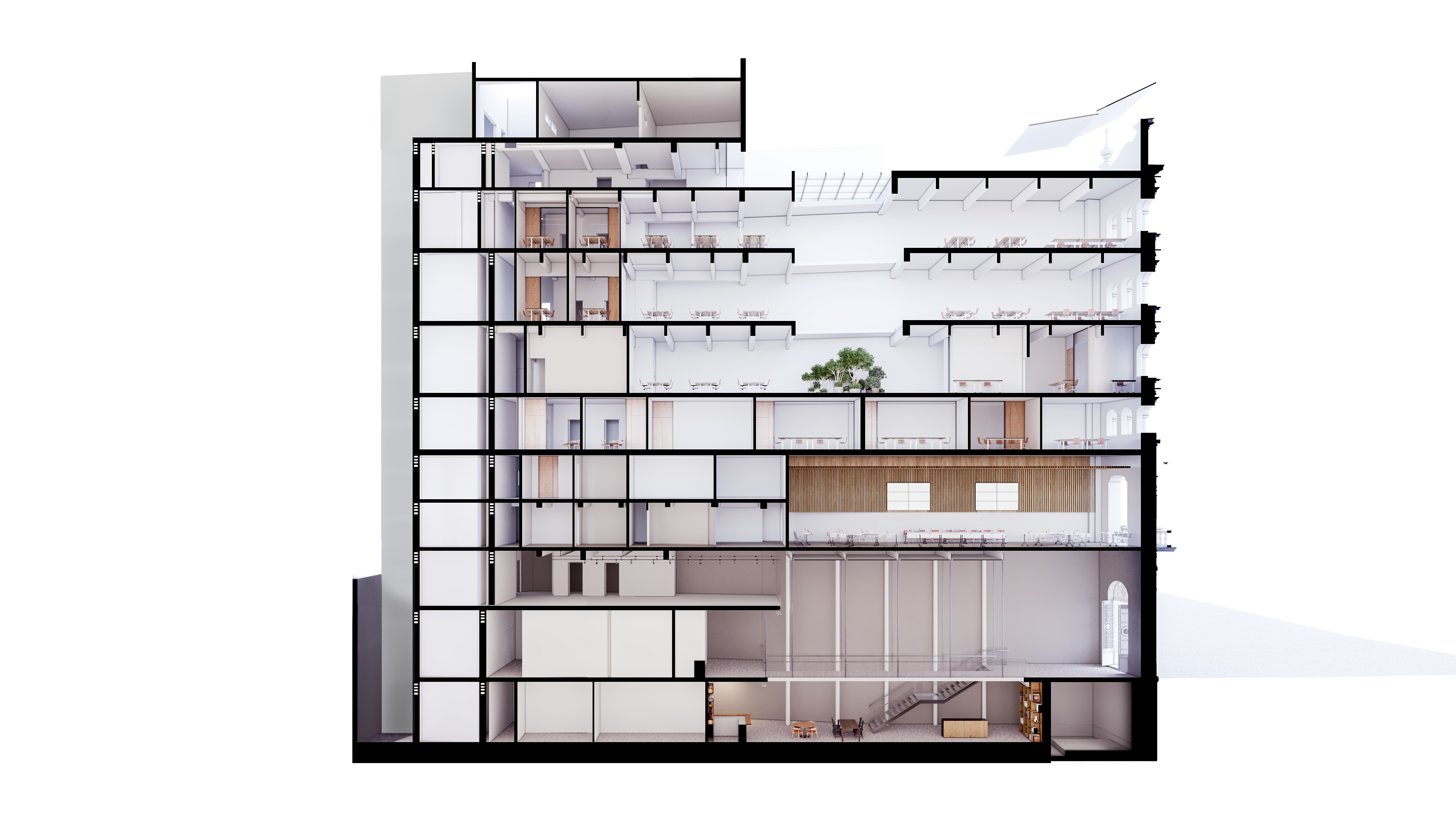 Retrofit de prédio histórico no centro de São Paulo para a sede do CAU-SP. O projeto busca a valorização dos espaços de trabalho e de convivência além da integração com o espaço público através do grande átrio no pavimento térreo. A restauração do patrimônio histórico e a modernização das instalações foram questões relevantes consideradas no projeto.