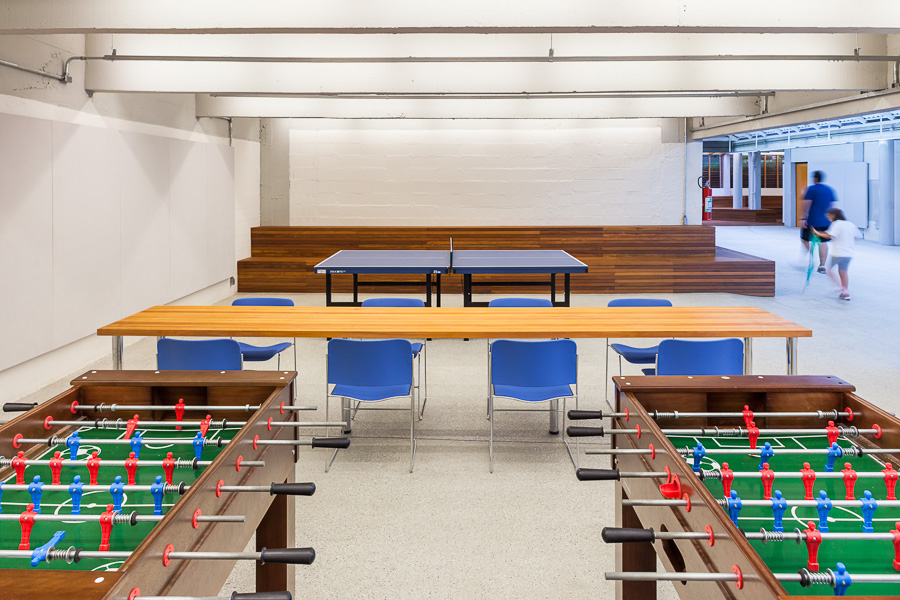 Retrofit do pavimento térreo para expansão da área administrativa e de recreação com novos espaços de convivência, biblioteca e quadra poliesportiva.