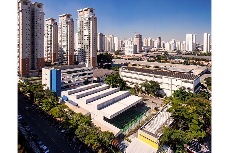 Retrofit geral do conjunto com ampliação do edifício de atividades esportivas, novo espaço de convivência e renovação das salas de aula.